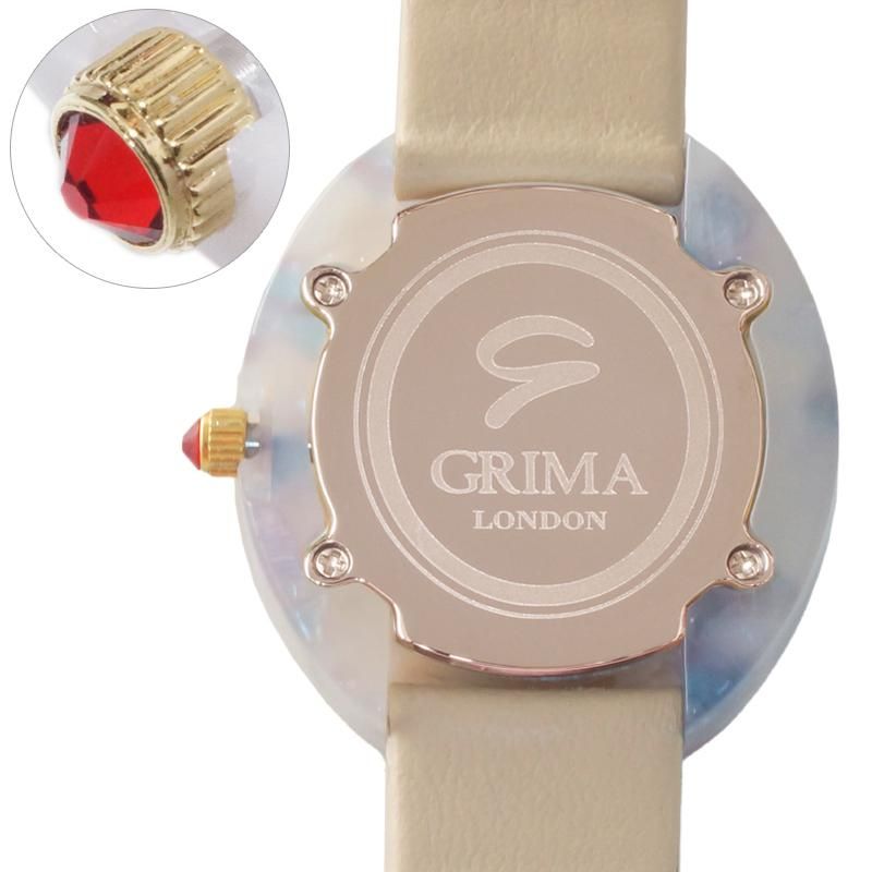 花言葉で「華麗」や「優美」を表し、厳選した1点ずつ異なる天然樹脂に、スワロフスキーのクリスタルガラスとの組み合わせでより華やかになるように手作業仕上げ。かつてナポレオンも愛したと言われるダリアで、手元を華やかに演出する限定モデル♪遊び心あふれるデザインで大人優美に。インデックス(時刻を表す数字)部分や竜頭の先端にも全体を引き立たせるクリスタルガラスをさりげなくあしらっています。